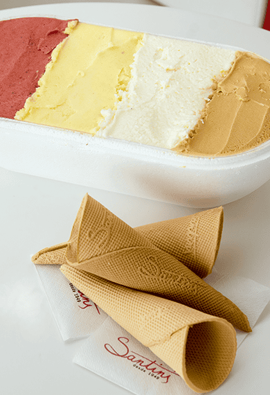 Do seu portefólio de sabores fazem parte os mais clássicos, como chocolate, baunilha ou morango, mas também outras frutas, como maçã, meloa ou abacaxi com hortelã; e ainda sabores mais diferentes, como ricotta com pêra ou gorgonzola com nozes. A carta de sabores está sempre a mudar e uma coisa é certa: semana sim, semana sim encontrará sabores que o vão deixar de água na boca.