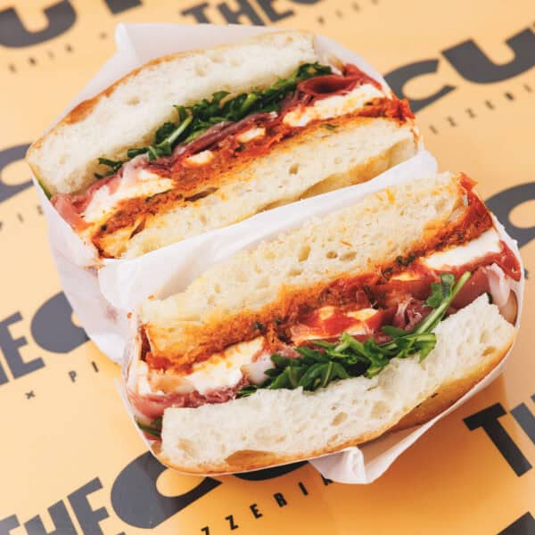 Para a abertura da terceira loja no Amoreiras, desenvolvemos em exclusivo uma nova gama de produtos, a focaccia, que é um pão rústico italiano, feito com azeite e alecrim e temperado com flor de sal. Para o recheio das nossas sandwiches focaccia, fomos buscar os melhores ingredientes e charcutaria italianos, desde a mozzarella fresca, a burrata, a mortadela e o presunto speck afumicatto.