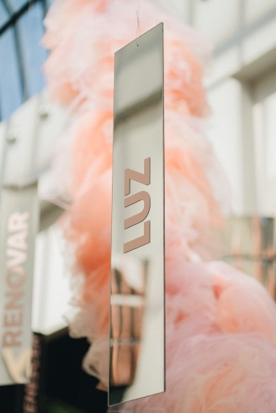 Criada manualmente com processos artesanais de costura, cada detalhe reflete o cuidado e a dedicação de um trabalho feito à mão. Tecidos leves e translúcidos compõem a instalação, numa paleta fresca e romântica, em sintonia com as tendências da estação.